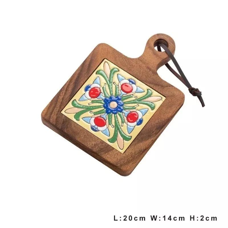 Introducing our Acacia Wood and Colorful Tile Trivet, a perfect amalgamation of practicality and style for your kitchen and dining needs. Crafted from premium Philippine Acacia wood, this trivet boasts a thick, clear wood grain, ensuring durability and resistance to cracking. The addition of retro-inspired tiles not only adds an element of elegance but also enhances the thermal insulation, making it superior to other materials. Whether you’re placing a hot tea pot or a sizzling pan, this trivet ensures your surfaces remain unscathed.