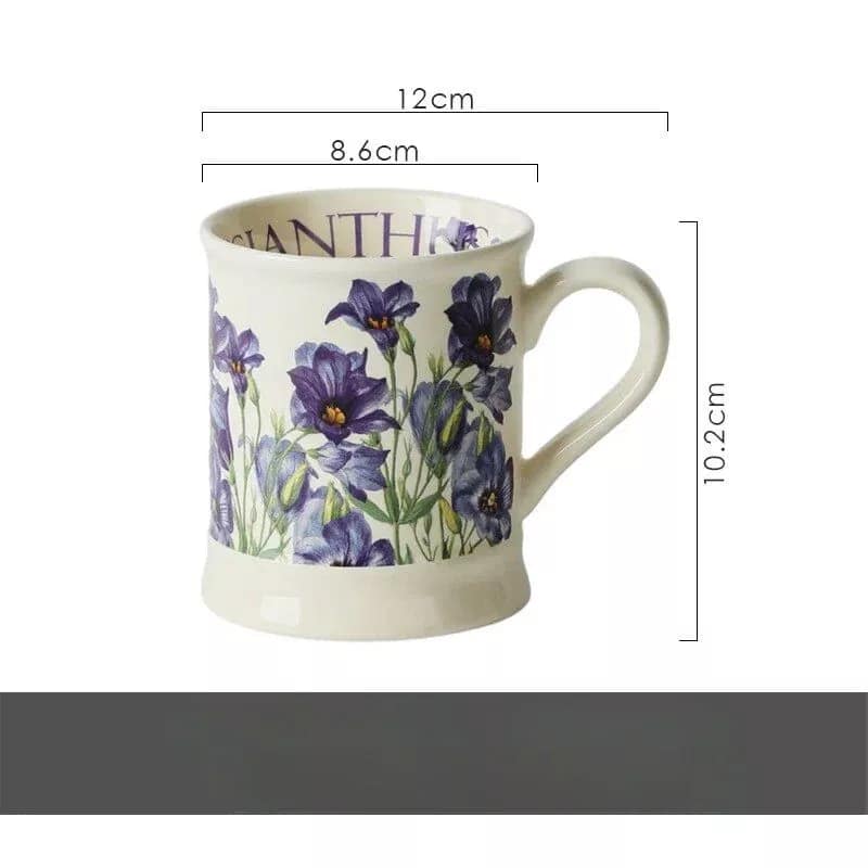 Our Chic Handgrip Ceramic Mug is crafted with high-quality ceramic material, ensuring durability and a premium feel. The mug comes in a variety of captivating floral designs including Red Begonia, Blue Butterfly, Blue Platycodon, Pansy, and Geranium, each adding a unique touch of nature to your day. With its ergonomic handgrip shape, it is comfortable to hold, and its 380ml capacity is perfect for your favorite beverages.