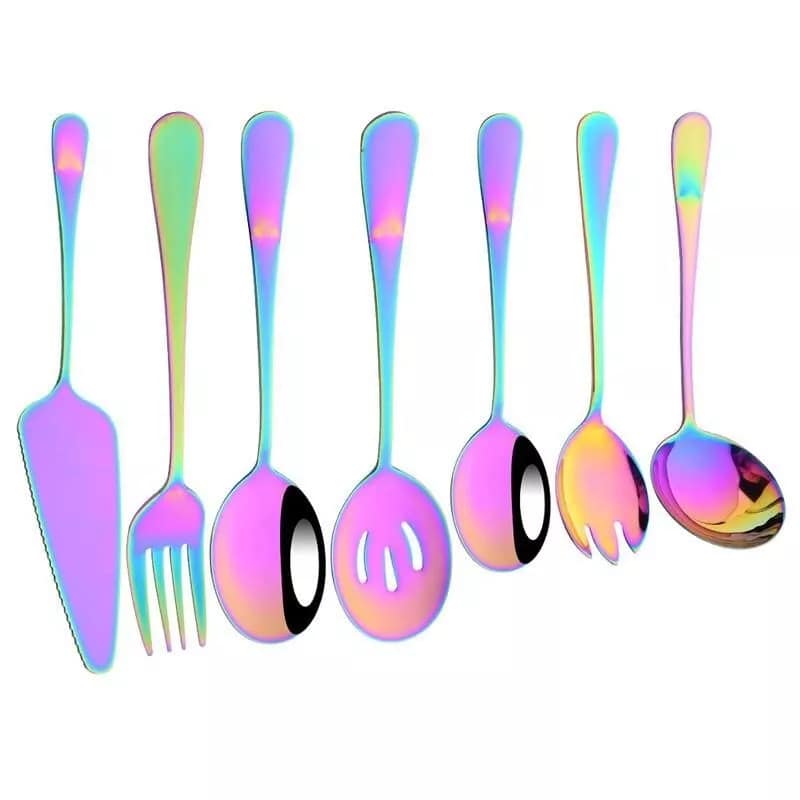- Multi-purpose Use: Includes soup spoon, colander spoon, service spoon, salad fork, and cake spatula for diverse dining needs.