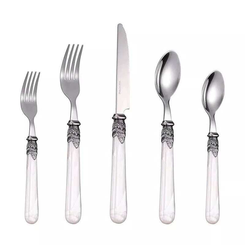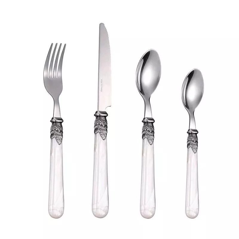 Our cutlery set is made from premium 304 stainless steel, known for its strength and longevity. The eye-catching gold inlay pattern elegantly contrasts with the acrylic handle, creating a vintage yet contemporary look. The set includes a knife, fork, and spoon, catering perfectly to individual dining needs.