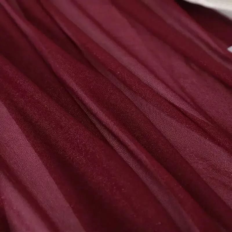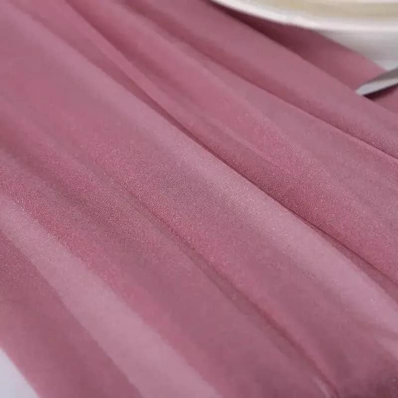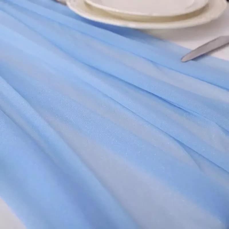 Made from 100% high-quality polyester, these table runners feature a lightweight, chiffon-like fabric that drapes beautifully. The subtle sparkle effect embedded within the fabric adds a romantic and sophisticated touch without being overpowering. Our unique thermal cutting no seaming technique ensures each runner is gracefully finished, preventing fraying and maintaining elegance over time.