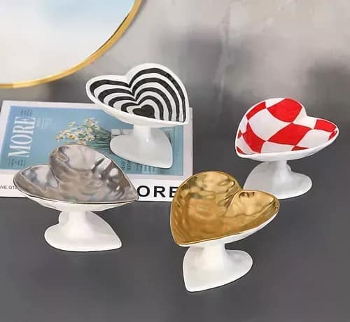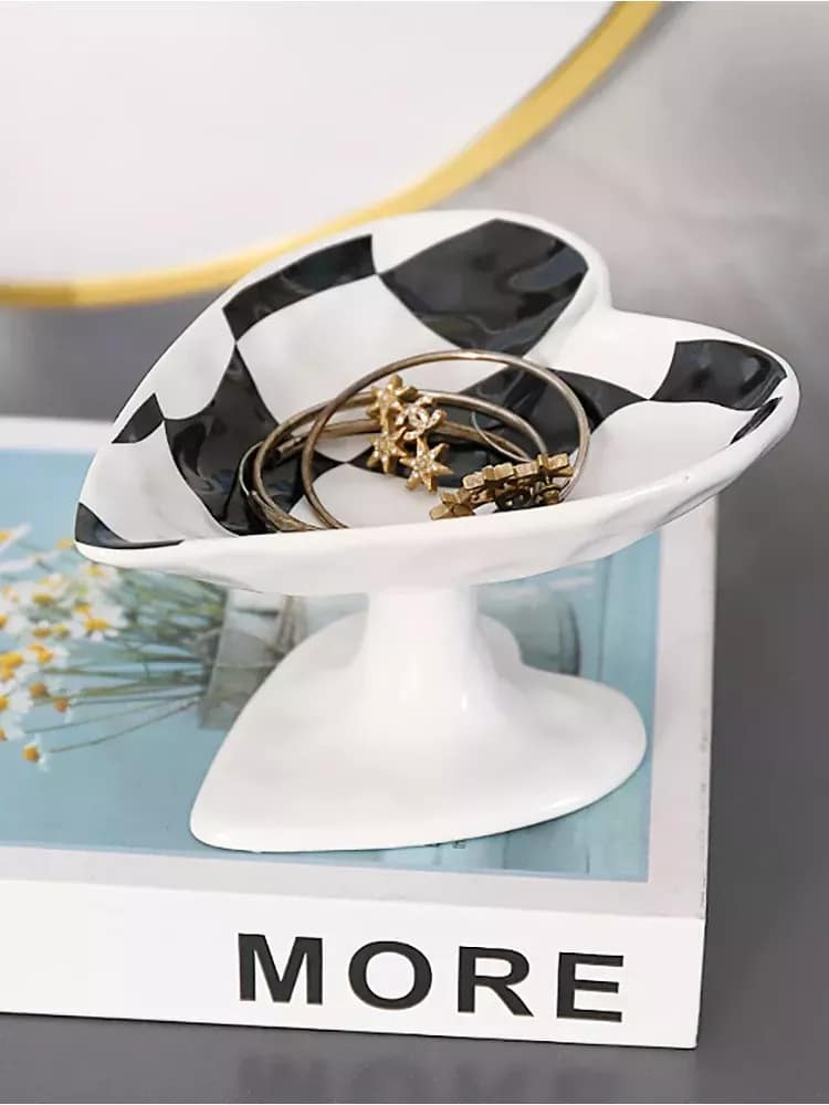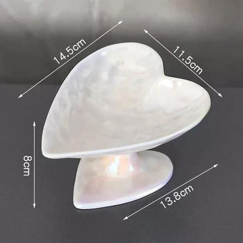 Introducing our exquisite Heart-Shaped Ceramic Tray, a versatile masterpiece designed to add a touch of sophistication and organization to your space. Crafted with love and precision, this tray serves as the perfect holder for your cherished jewelry, cosmetics, or as an elegant display for fruits and desserts. Its delicate design and modern style make it a must-have ornament for any table setting.