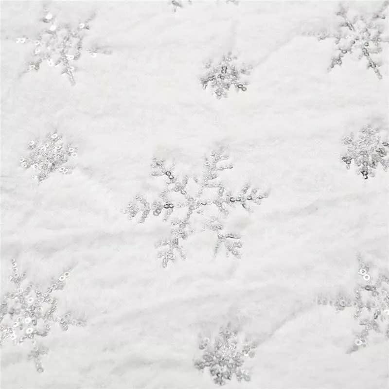 Crafted with meticulous attention to detail, this table runner features elegant sequin snowflakes embroidered onto a luxurious white faux fur background. The sophisticated knitted technique ensures durability and long-lasting beauty, while the polyester and cotton blend provides a soft, tactile experience. Customized to fit your unique style, it measures 183 x 38 cm (6 x 1.25 ft), making it a versatile choice for various table sizes.