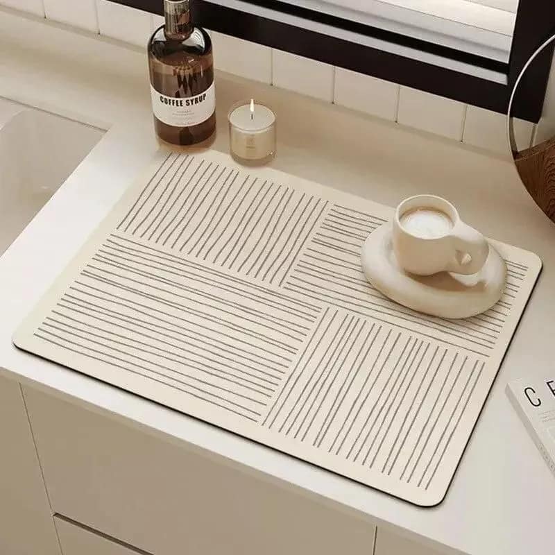 Introducing our Versatile Absorbent Diatomite Kitchen Mat, a perfect blend of functionality and style for your kitchen space. Designed with modern households in mind, this mat is not just a kitchen accessory but a revolution in maintaining cleanliness and organization in your home. With its sleek striped pattern and contemporary design, it seamlessly integrates with any kitchen decor, making it an ideal choice for today’s stylish homes.